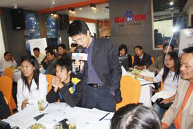 秋高氣爽,舒適宜人。2008年10月24號下午,“營銷加速度”——百度營銷專家培訓(xùn)會(huì),在美麗的丹頂鶴之鄉(xiāng)鹽城拉開了帷幕。在思科百度商務(wù)會(huì)所里,客戶們齊聚一堂,氣氛甚是融洽。本次會(huì)議真可謂陣容強(qiáng)大,百度客服部經(jīng)理張鵬先生與百度渠道部經(jīng)理晟皞先生兩大經(jīng)理齊上陣,再加上思科資深網(wǎng)絡(luò)營銷專家、客服部經(jīng)理盧全女士精彩而實(shí)用的演講,現(xiàn)場客戶個(gè)個(gè)大飽耳福,獲益非淺。會(huì)議開場主持人帶領(lǐng)大家玩默契火拼游戲,破冰熱場,大家玩得不亦樂呼!短暫的游戲后,與會(huì)嘉賓都專心致志的聽著張鵬經(jīng)理、盧全經(jīng)理精彩的演講。在有獎(jiǎng)問答環(huán)節(jié),客戶們更是奮勇?lián)尨穑颜麄€(gè)會(huì)議推向了高潮。