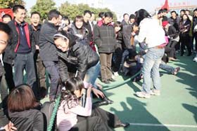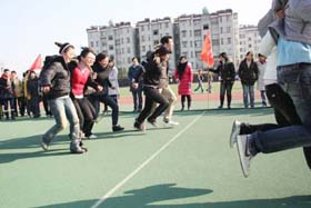 寒風(fēng)簌簌,陽光絢爛。在2008年12月6日這個寒冷而富有激情的日子里,我司第一屆冬季運動會火熱開展。為了充分調(diào)動大家的激情,此次比賽項目的策劃可謂煞費苦心。除了籃球賽、4*100接力賽、100米短跑、乒乓球比賽、等傳統(tǒng)比賽項目外,新增了很多趣味比賽項目如:趕小豬、兩人三足跑、夾球跑……大家玩得不亦樂乎!為了充分調(diào)動大家積極性,我們?yōu)檫\動健兒們準(zhǔn)備了豐富的獎品,有棉被、電蒸鍋、電熱水捂、手套、圍巾、領(lǐng)帶、保溫杯、指套裝、收音機、筆筒等等。我們還特設(shè)抽獎環(huán)節(jié),每項比賽的前三名都會獲得一張“金卡”,拿著金卡可以抽獎,中獎率為100%,未得金卡的選手們也將得到一份精美禮品。