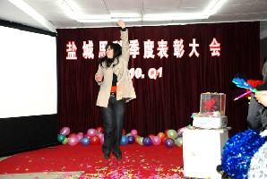 優(yōu)秀商務(wù)經(jīng)理陳劉珍接受陳總的頒獎(jiǎng),并與伙伴們交流成功心得,堅(jiān)持不懈才是王道