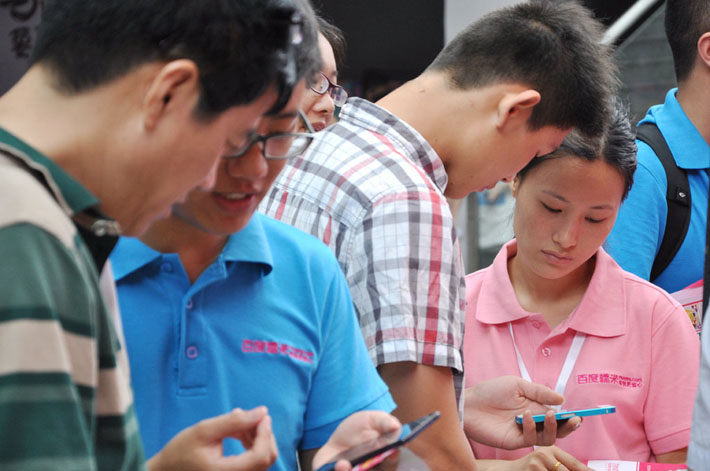 百度糯米優(yōu)惠的團購價格、優(yōu)質的商家吸引了參會者駐足觀看,拿起了手機趕快到百度糯米上團購,小姐妹們今天的午飯有著落嘍!