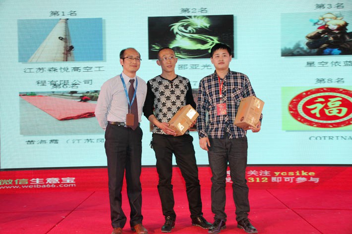 互動(dòng)游戲—微信派紅包,企業(yè)家們積極參與,胡總與幸運(yùn)客戶合影留念。